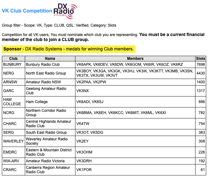 Thank you to DX Radio Systems in Perth for sponsoring the competition.